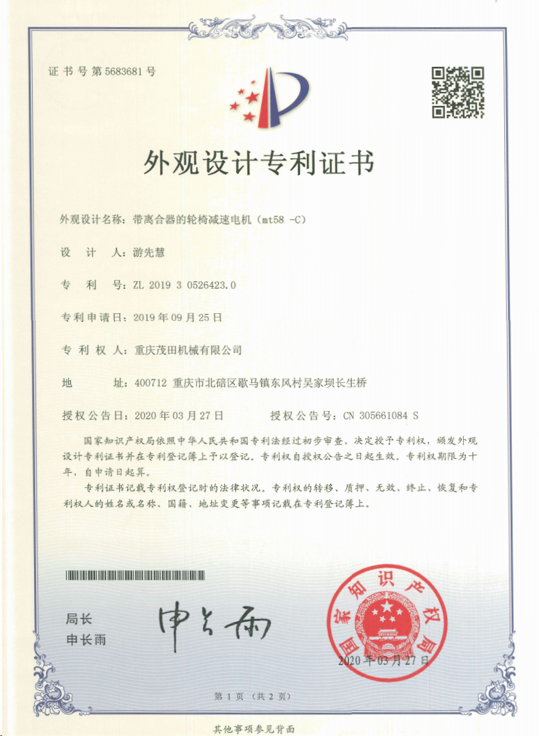 重慶茂田機(jī)械有限公司是國(guó)家級(jí)小巨人企業(yè)、國(guó)家高新技術(shù)企業(yè)、重慶市專(zhuān)精特新企業(yè)、重慶市知識(shí)產(chǎn)權(quán)優(yōu)勢(shì)企業(yè),致力于現(xiàn)代化山地農(nóng)業(yè)機(jī)械、各類(lèi)非標(biāo)減速電機(jī)及其控制系統(tǒng)的研發(fā)、生產(chǎn)、銷(xiāo)售。擁有重慶市市級(jí)研發(fā)平臺(tái)1個(gè) 目前研發(fā)、生產(chǎn)、銷(xiāo)售產(chǎn)品廣泛應(yīng)用于農(nóng)業(yè)機(jī)械、醫(yī)療康復(fù)設(shè)備、交通代步工具、智能搬運(yùn)設(shè)備、以及機(jī)器人動(dòng)力系統(tǒng)等領(lǐng)域。我們的產(chǎn)品具有完整的自主知識(shí)產(chǎn)權(quán),擁有多項(xiàng)專(zhuān)利技術(shù)及“重慶